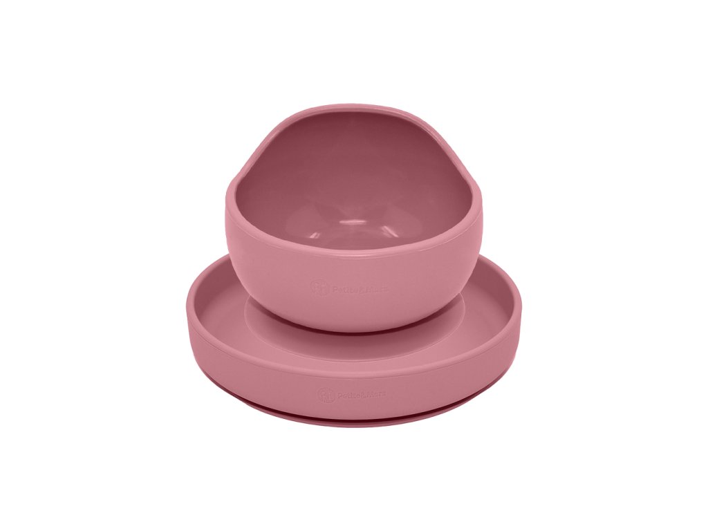 PETITE&MARS Set jídelní silikonový TAKE&MATCH 2 ks talíř + miska Dusty Rose 6m+