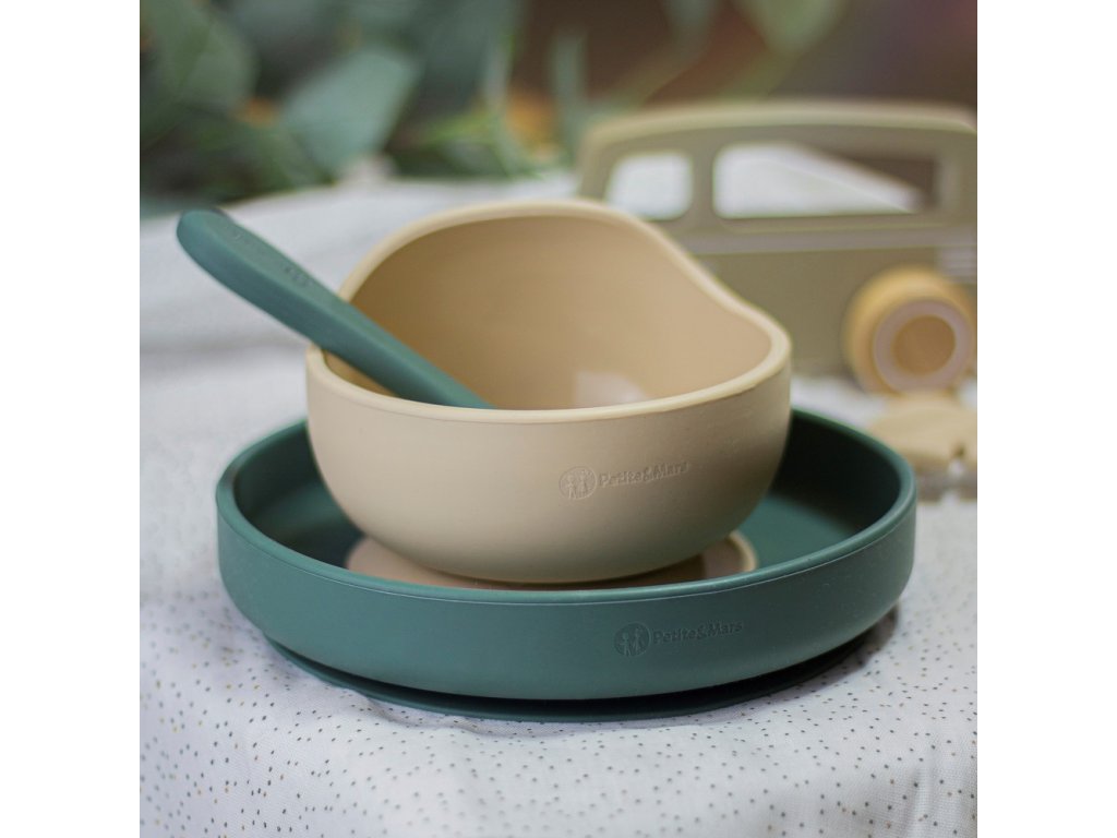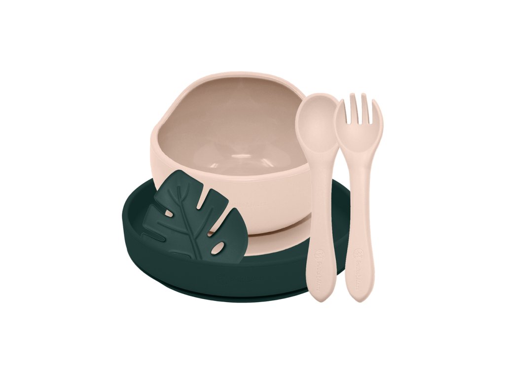 PETITE&MARS Set jídelní silikonový TAKE&MATCH 4 ks Desert Sand - Misty Green 6m+