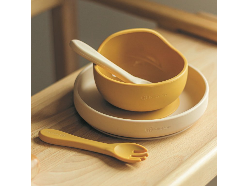 PETITE&MARS Set jídelní silikonový TAKE&MATCH 4 ks Intense Ochre - Desert Sand 6m+