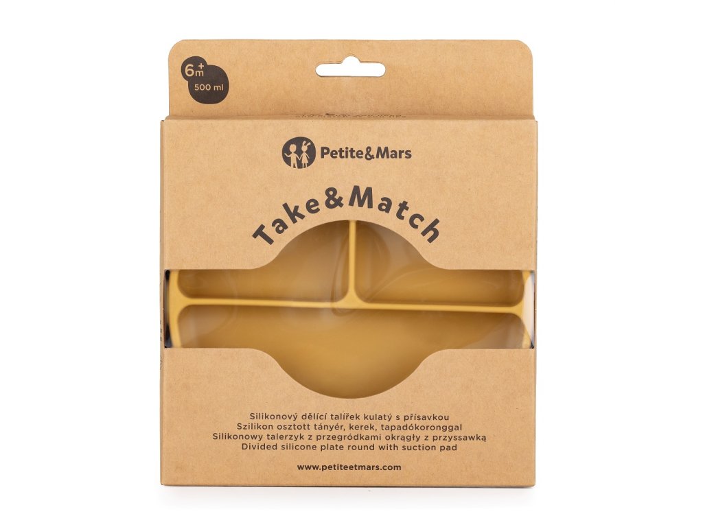 PETITE&MARS Talířek silikonový dělící kulatý Take&Match Intense Ochre 6m+