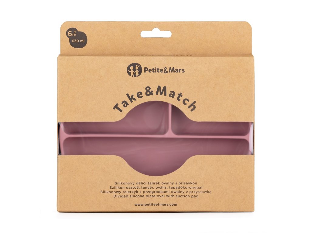 PETITE&MARS Talířek silikonový dělící oválný Take&Match Dusty Rose 6m+