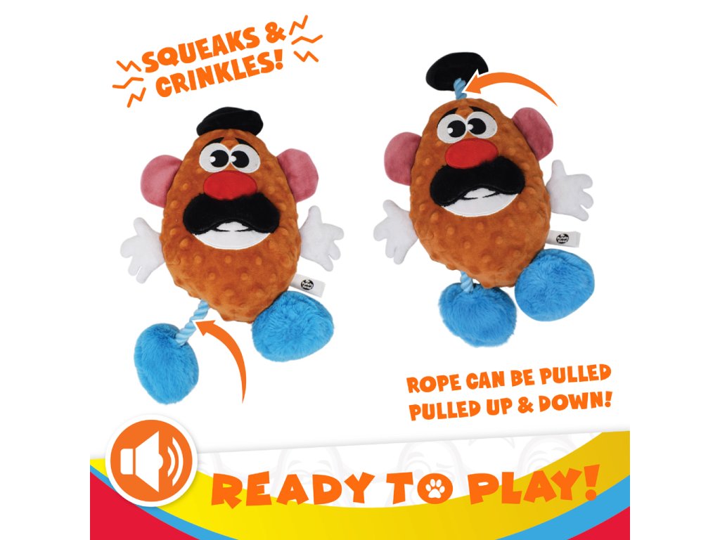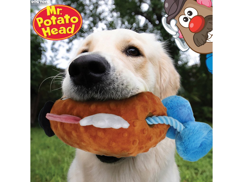 - Klasická postavička Mr. Potato Head: Oblíbená hračka přeměněná na plyšovou zábavu pro psy.