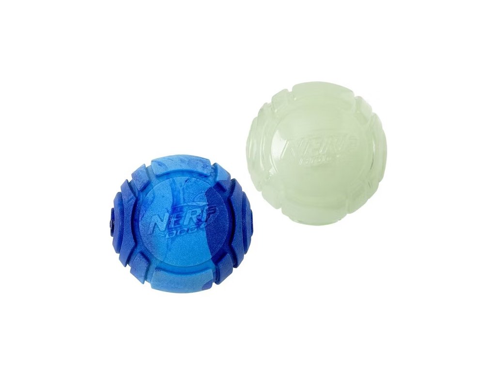 NERF DOG Dárkový set - svítící míček Lightning 6,5 a Sonic míček s vůní arašídového másla 6,5 cm