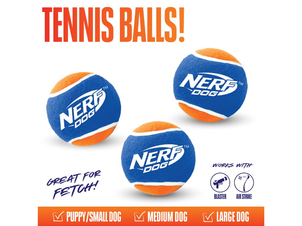 NERF DOG Hračka pro psy 3 ks tenisových míčků bez pískadla v tlakové dóze 6,5 cm