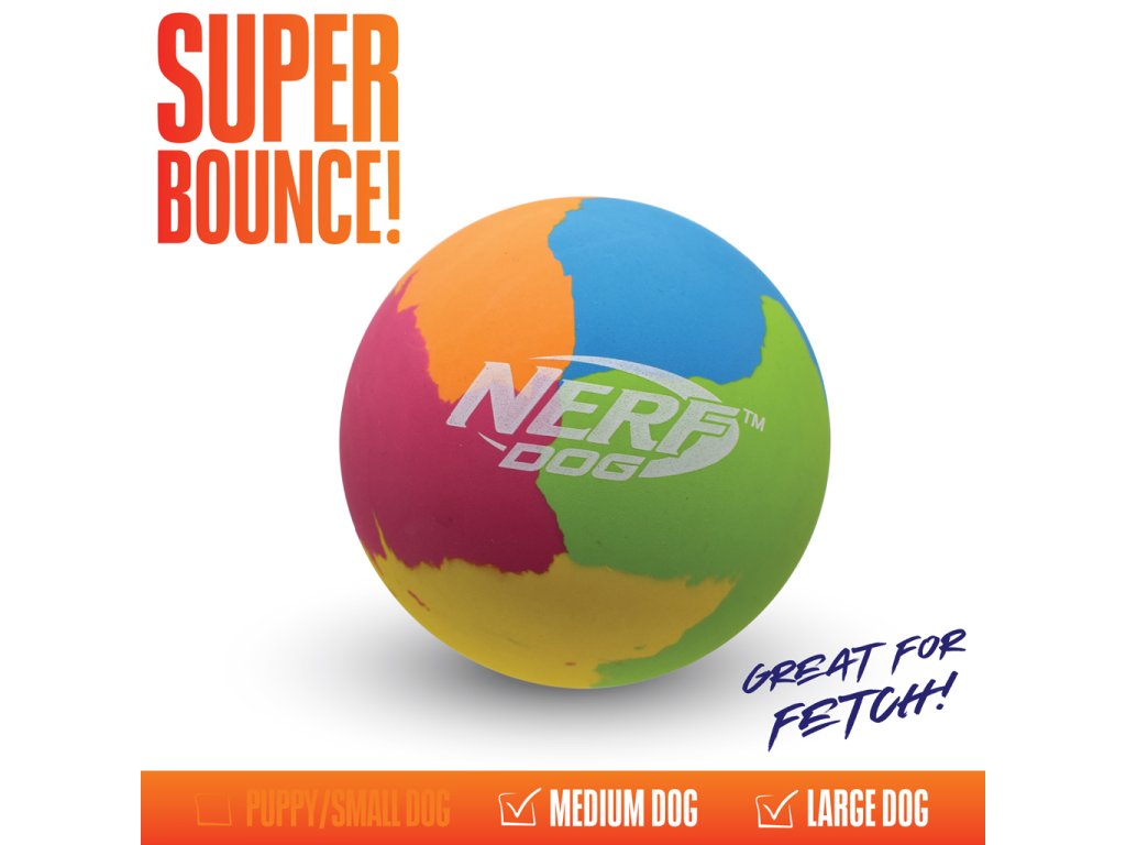 Míček Nerf Super Bounce Ball je určený pro aktivní aportování a běhaní s vaším psem. Je vyroben z vysoce kvalitní gumy, která poskytuje vysoký odrazový výkon („super odskok“) – míček se při nárazu nebo při hození nepředvídatelně odráží, stimuluje vašeho psa a zvyšuje vzrušení během hry.