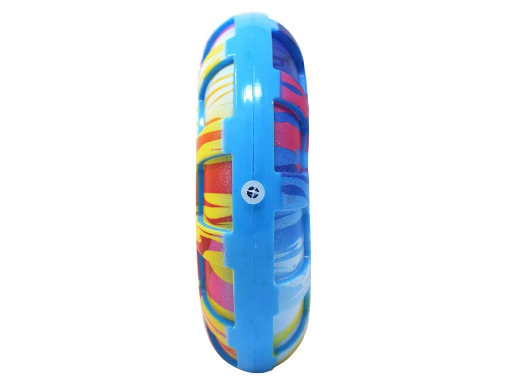Barevné provedení je kontrastní a výrazné, což zlepšuje viditelnost hračky na trávníku, v parku či na píse – usnadňuje to sledování letu nebo pohybu prstence při aportování.