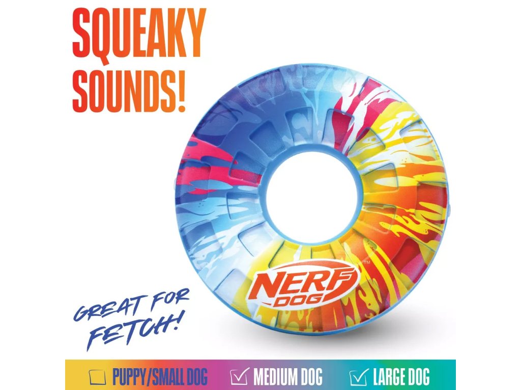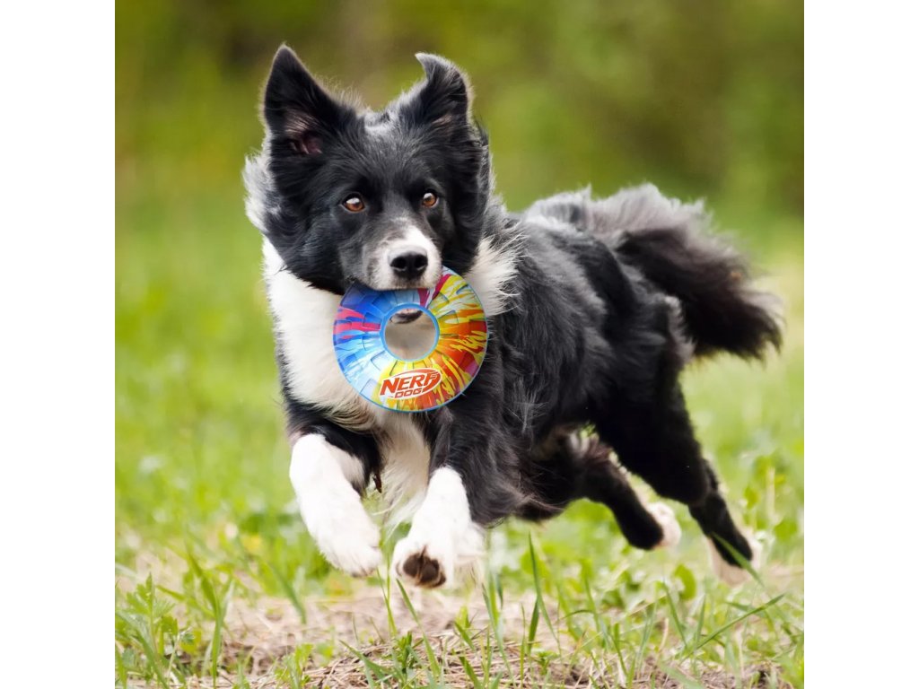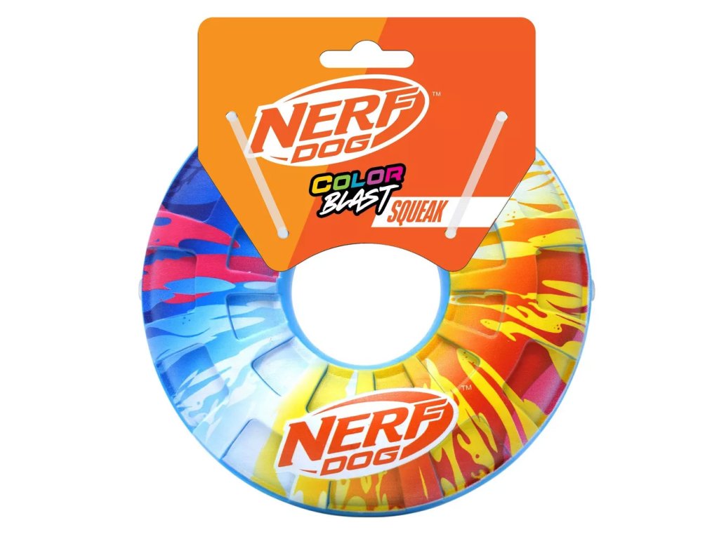 NERF DOG Hračka pro psy pískací kruh s barevným úchopem 15 cm