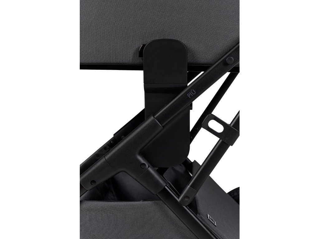 Prostorný sportovní sedák s rozepínatelnou stříškou a krytou ventilační síťkou