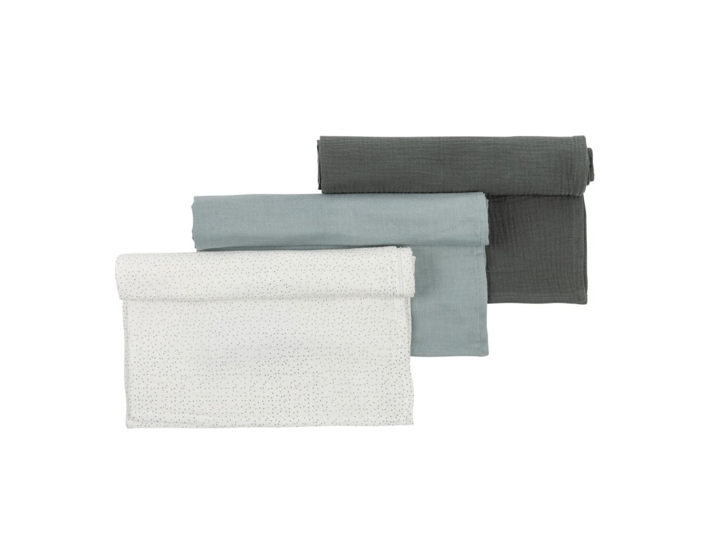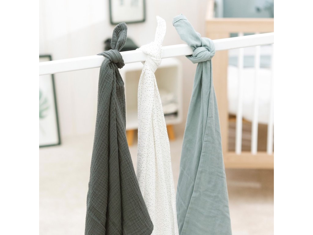 Heboučké měkké mušelínové pleny jsou nedílným společníkem v každodenním životě s novorozenci a miminky a neměly by chybět v žádné dětské výbavičce. Mají všestranné využití ať už doma při koupání nebo na cestách s kočárkem nebo autem. Děťátko můžete mušelínovými plenkami zabalit, zakrýt nebo je použít jako prostěradlo či osušku. Jsou vhodné i ke krytí při kojení. Látkové pleny zaujmou také krásným designem v moderních barvách.