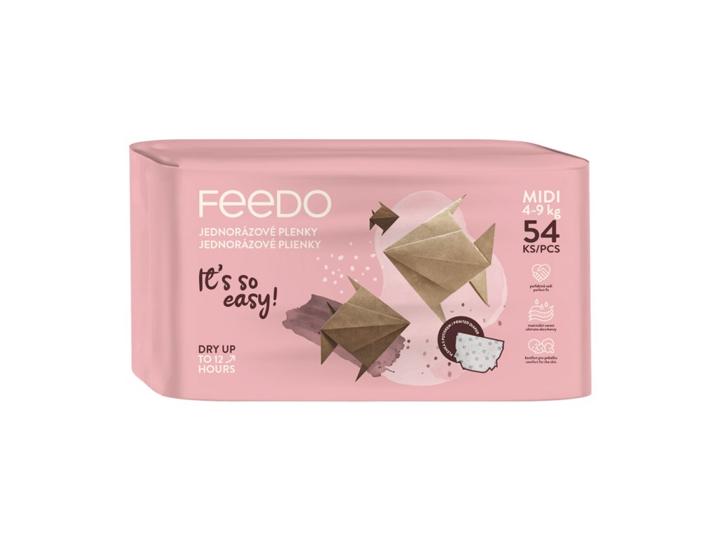Jednorázové pleny pro děti z pestrobarevné kolekce FEEDO! Byly navrženy speciálně s ohledem na rodiče a jejich nejmenší a díky dokonale promyšleným vlastnostem poskytují komfort při používání, vynikající ochranu a klid během celého dne. Chrání před protečením až 12 hodin, zajišťují maximální savost a flexibilně se přizpůsobují děťátku.