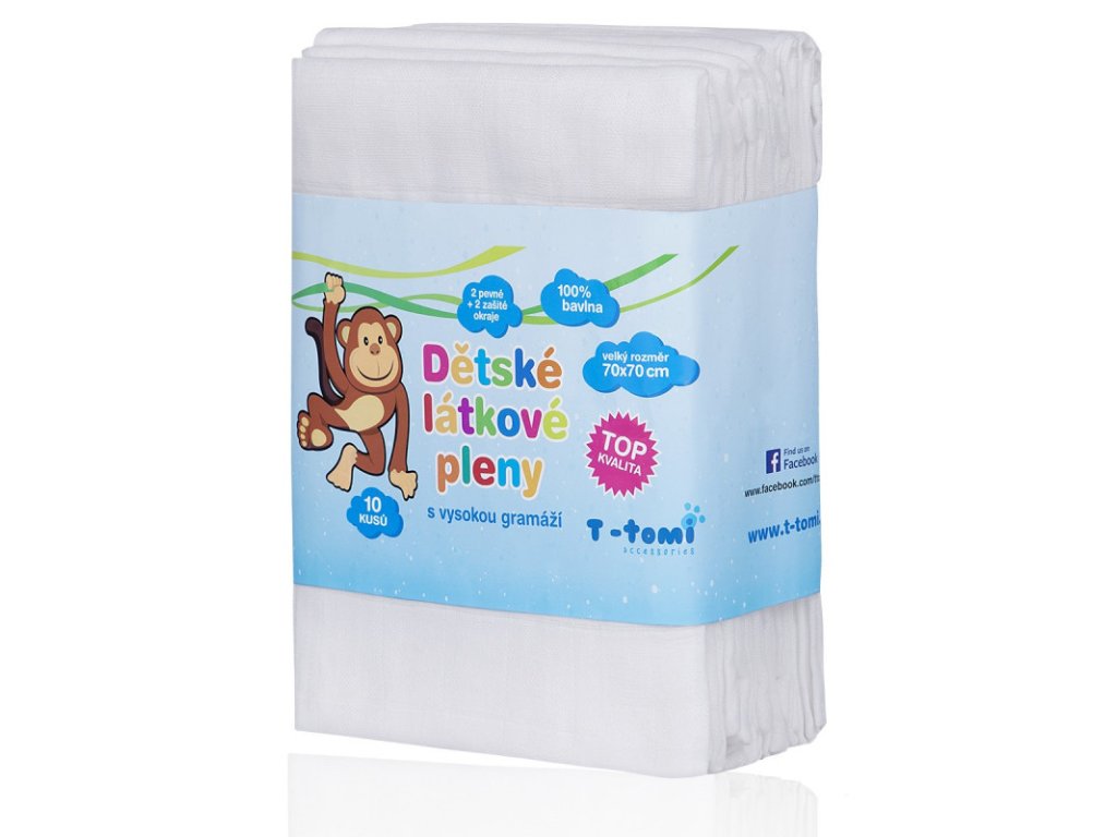 Dětské látkové pleny T-TOMI z vysokogramážní čisté bavlny jsou vyrobeny klasickou technologií tkaní v dutinné vazbě, což zaručuje zvýšenou savost a měkkost našich látkových plen.