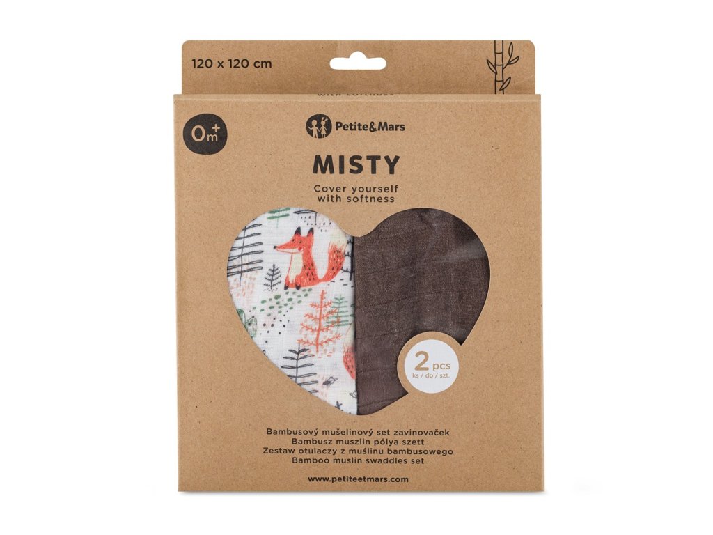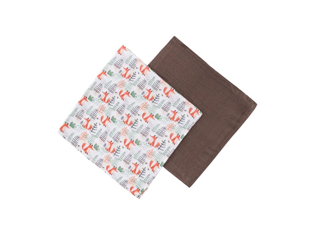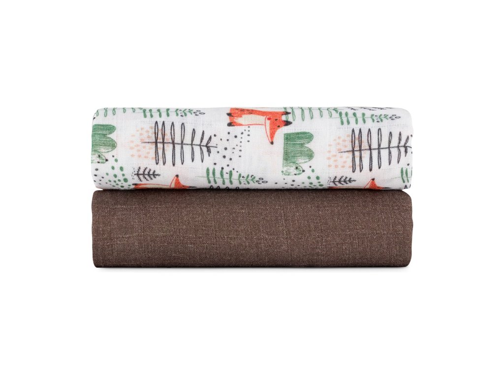 PETITE&MARS Přikrývka bambusová mušelínová 2ks Misty Forest Fox 120 x 120 cm