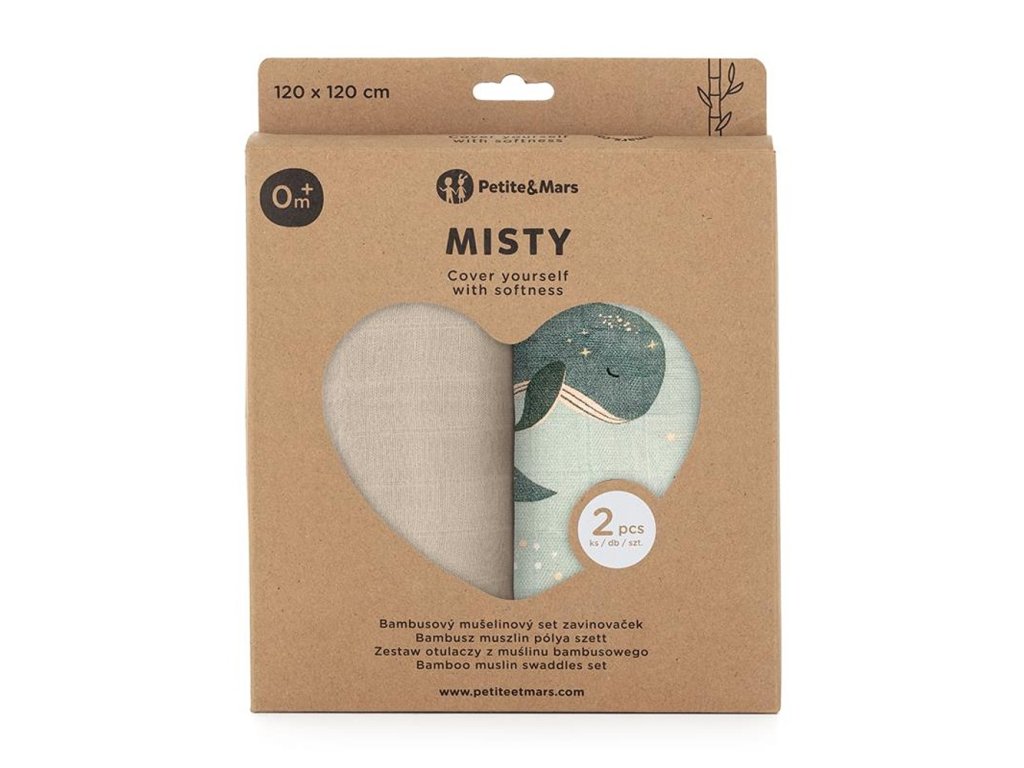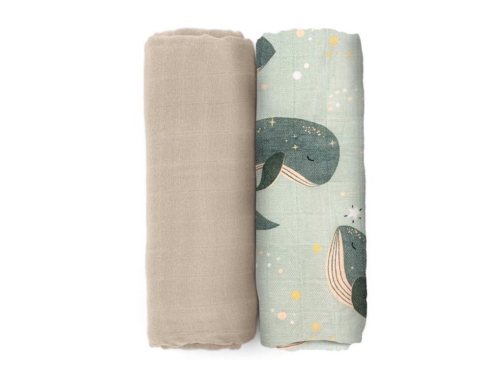 PETITE&MARS Přikrývka bambusová mušelínová 2ks Misty Whale Song 120 x 120 cm