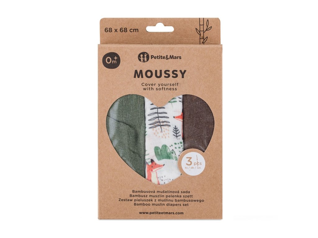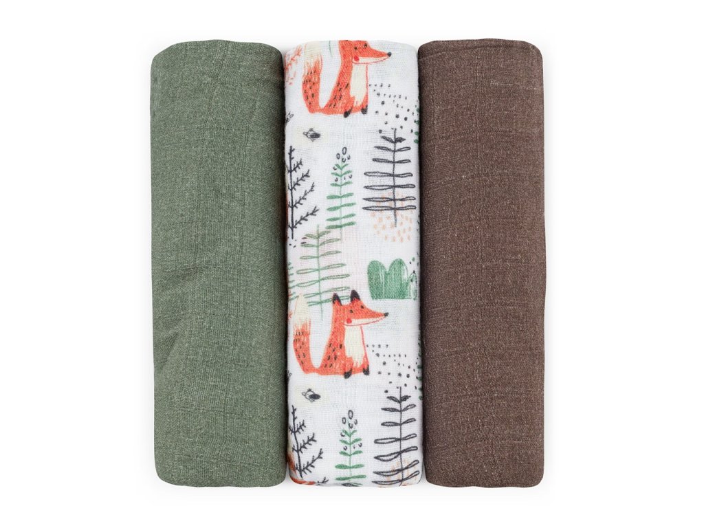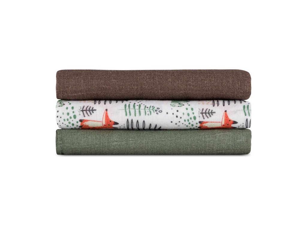 PETITE&MARS Sada plen bambusová mušelínová 3ks Moussy Forest Fox 68 x 68 cm