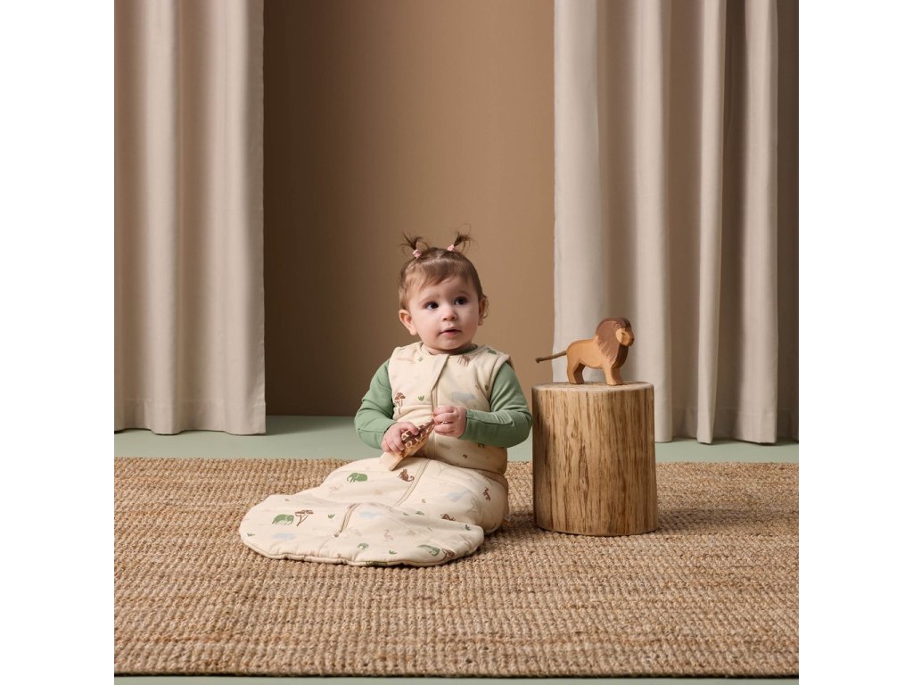 Vak na spaní Jersey 2,5 TOG je ideální pro udržení tepla pro dítě během noci v místnostech o teplotě 17-23 °C. Hodnota 2,5 TOG znamená, že při používání tohoto výrobku nejsou zapotřebí další přikrývky v postýlce, což z něj činí možnost bezpečného spánku. Rodiče si mohou být jisti, že prodyšná organická a přírodní vlákna pomáhají regulovat teplotu dítěte a zabraňují přehřátí. Rodiče se mohou řídit pokojovým teploměrem ZDARMA a příručkou What to Wear (Co si obléct), které jsou součástí výrobku, a vhodně pod ně navrstvovat vrstvy, aby jejich dítě zůstalo v teple.