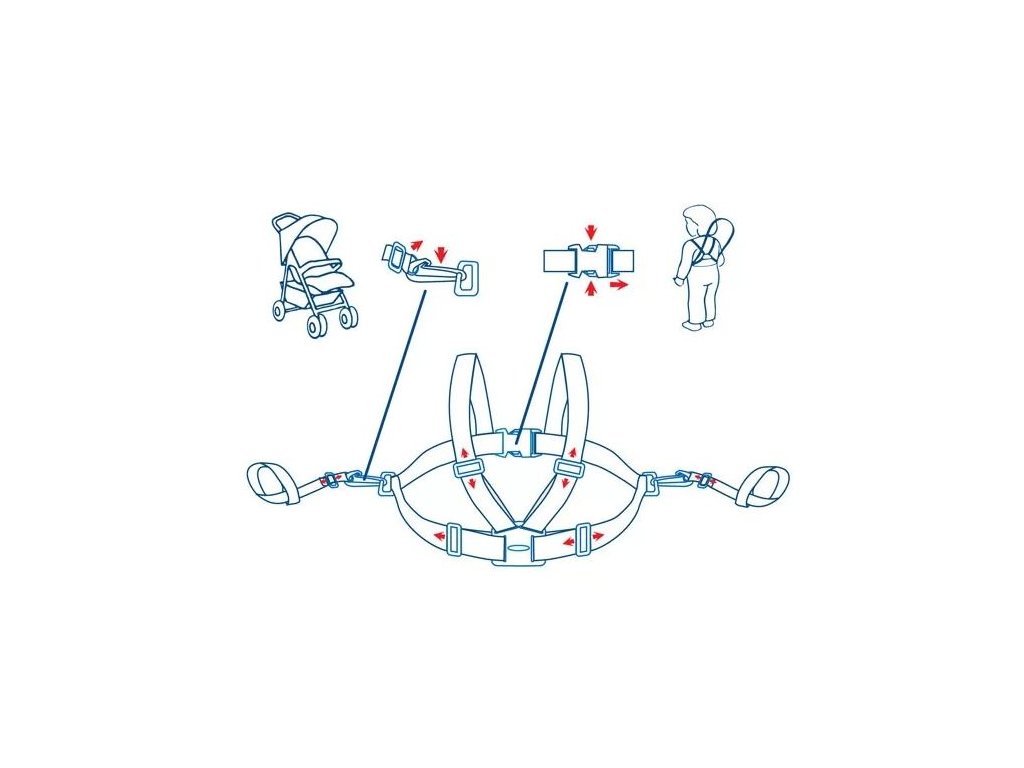 Ujistěte se, že upevňovací zařízení popruhů jsou kompatibilní s jinými výrobky používanými pro péči o děti.