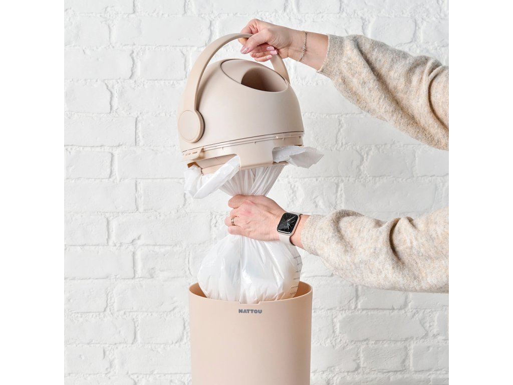 Zabraňte nepříjemným pachům v místnosti díky koši na pleny Dropy. Jednoduché použití, lze jej ovládat jednou rukou: zvednutím rukojeti hodíte plenu do koše a poté ji znovu spusťte tak, aby plenka spadla do kapsy. Díky speciálnímu uzavíracímu systému nemohou unikat pachy. Extra ekonomický, protože jej můžete použít s jakoukoli plastovou kapsou.