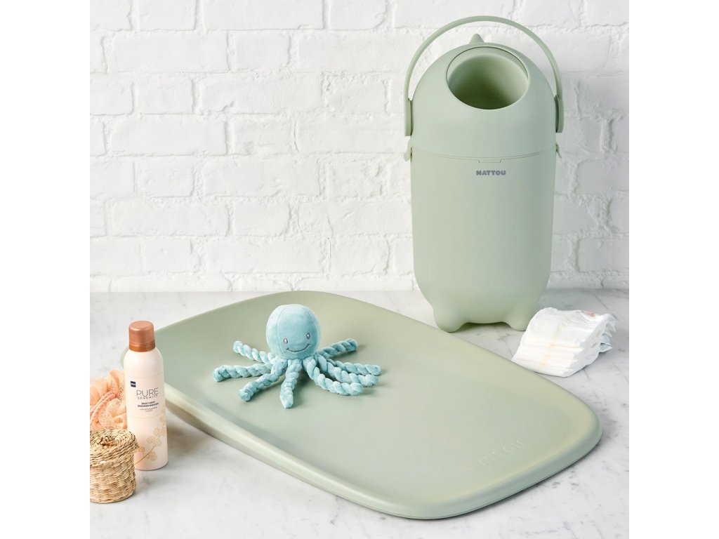 NATTOU Koš na pleny Dropy a přebalovací podložka Softy Green 50x70 cm