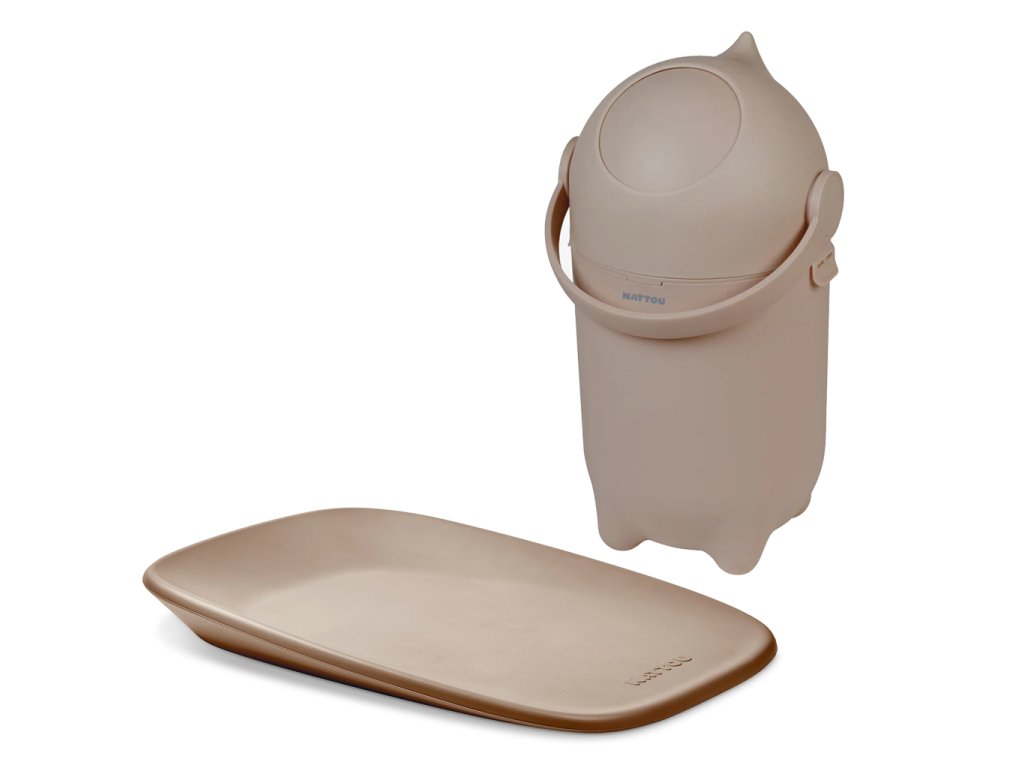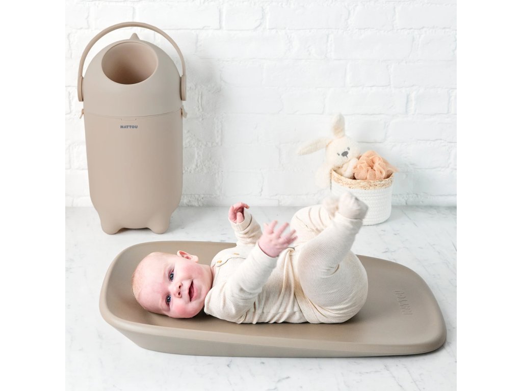 NATTOU Koš na pleny Dropy a přebalovací podložka Softy Taupe 50x70 cm