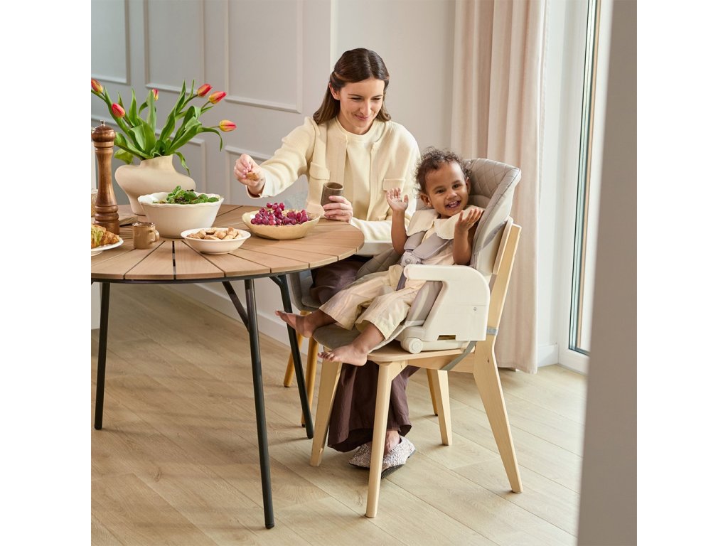 Tulo slouží jako jídelní židle, podsedák a židle pro starší dítě – do 25 kg. Má 5-stupňové nastavení výšky, 3-stupňové nastavení opěradla a opěrky nohou, jakož i dvojitý podnos s 3-stupňovým nastavením vzdálenosti.