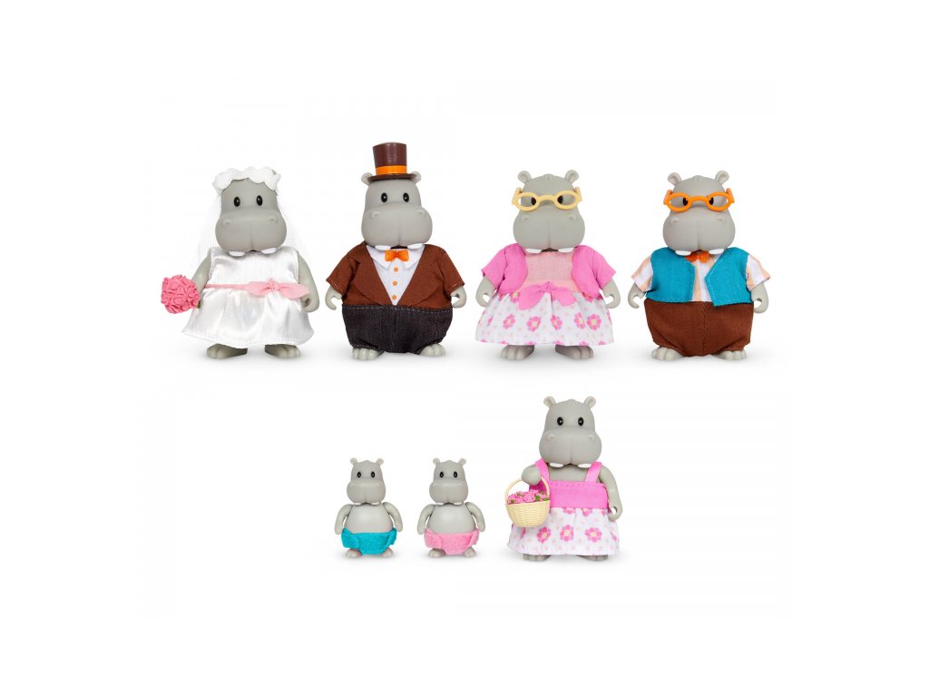 Sada obsahuje 7 postaviček hrochů. Další postavičky zvířátek, domečky, obchody, dopravní prostředky apod. se prodávají samostatně. Všechny postavičky a doplňky Li'l Woodzeez jsou navzájem kompatabilní a umožní vám vytvořit originální městečko pro nekonečnou hru rozvíjející fantazii a kreativitu vašeho dítěte.
