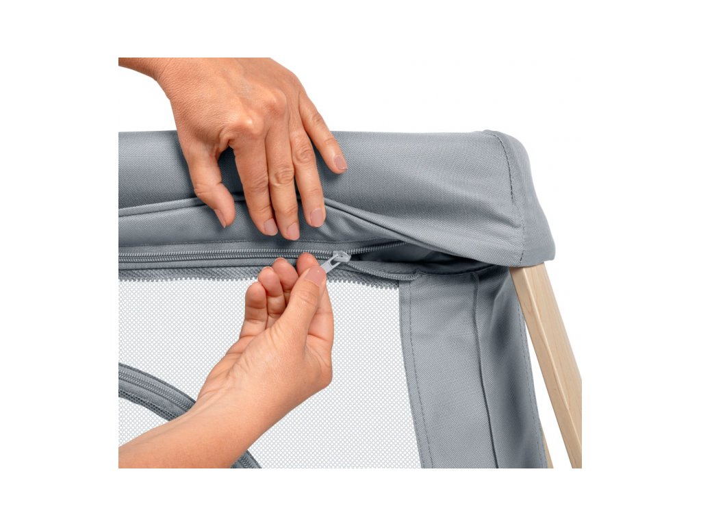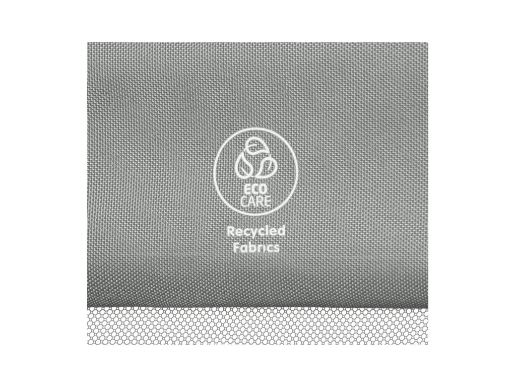 Snímatelný potah postýlky Eco Care je s ohledem na udržitelnost životního prostředí vyroben ze 100% recyklovaných materiálů a je možné ho prát v pračce.