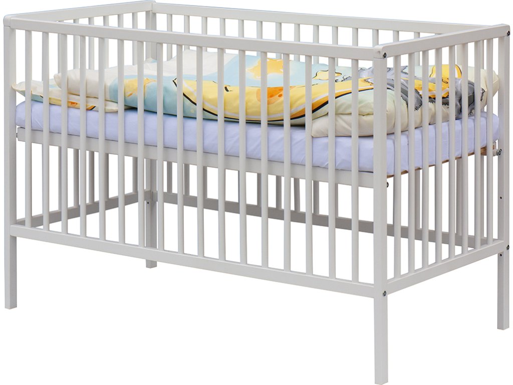 1. Dětská dřevěná postýlka 120x60 cm - bílá, masiv buk, 3 vyndavací příčky, 3 polohy roštu