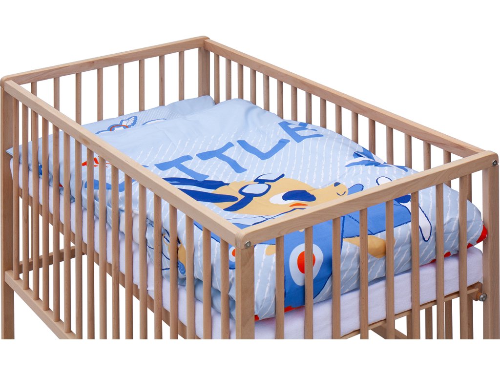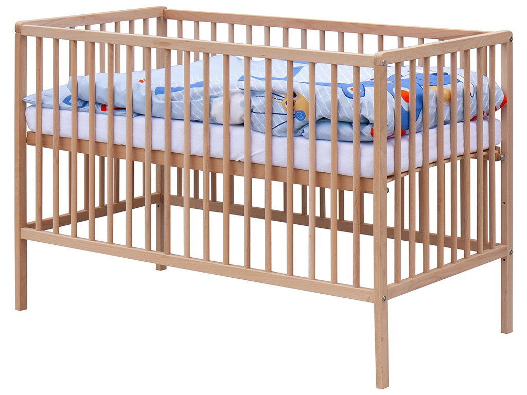 1. Dětská dřevěná postýlka 120 x 60 cm - přírodní, masiv borovice, 3 vyndavací příčky, 3 polohy roštu,