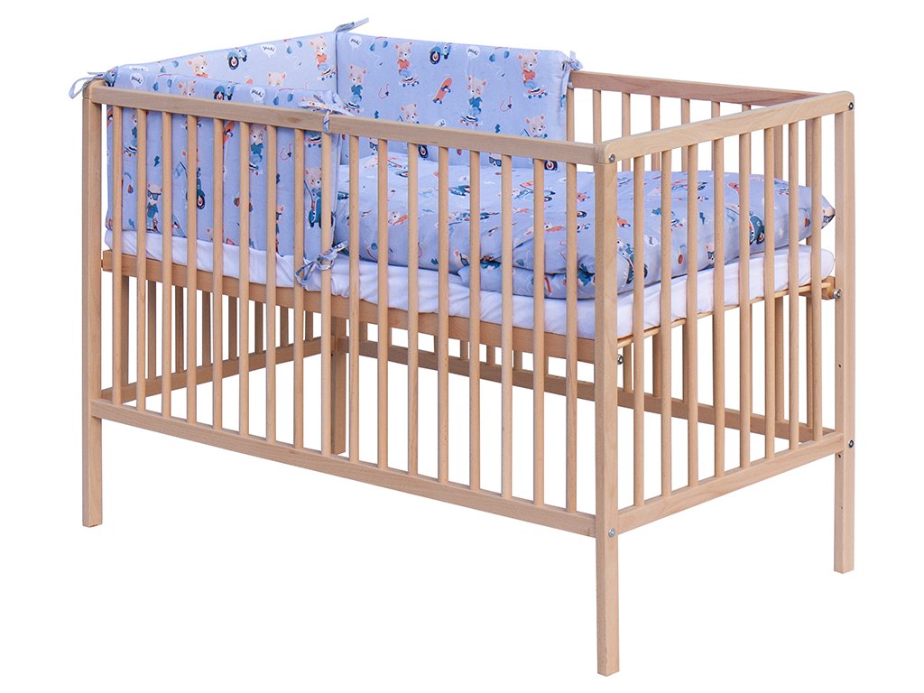 1. Dětská dřevěná postýlka 120x60 cm - přírodní, masiv buk, 3 vyndavací příčky, 3 polohy roštu, nohy jsou předvrtané pro možné nasazení koleček
