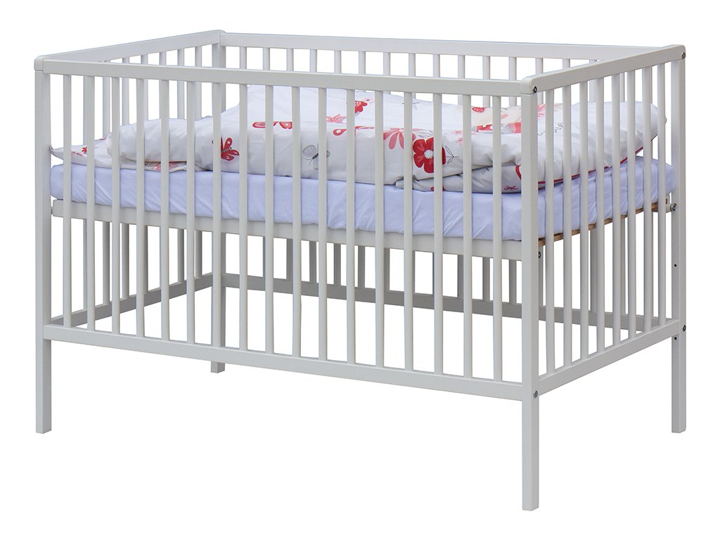1. Dětská dřevěná postýlka 120x60 cm - bílá, masiv buk, 3 vyndavací příčky, 3 polohy roštu