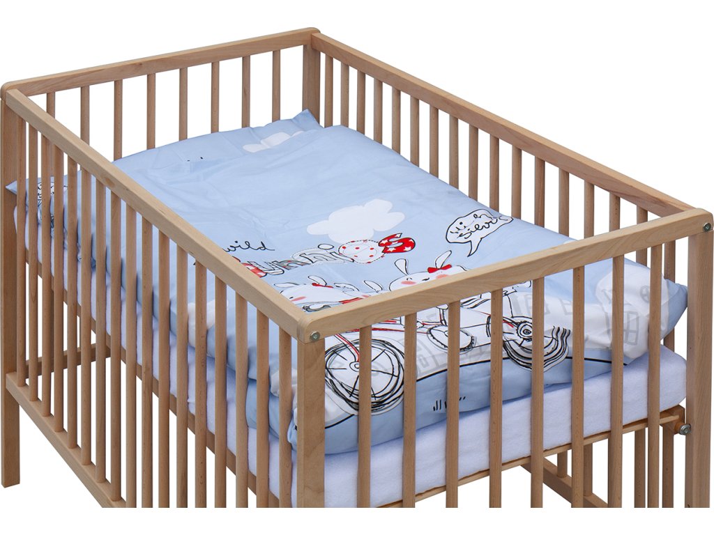 1. Dětská dřevěná postýlka 120 x 60 cm - přírodní, masiv borovice, 3 vyndavací příčky, 3 polohy roštu,