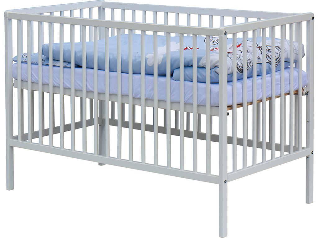 1. Dětská dřevěná postýlka 120x60 cm - bílá, masiv buk, 3 vyndavací příčky, 3 polohy roštu