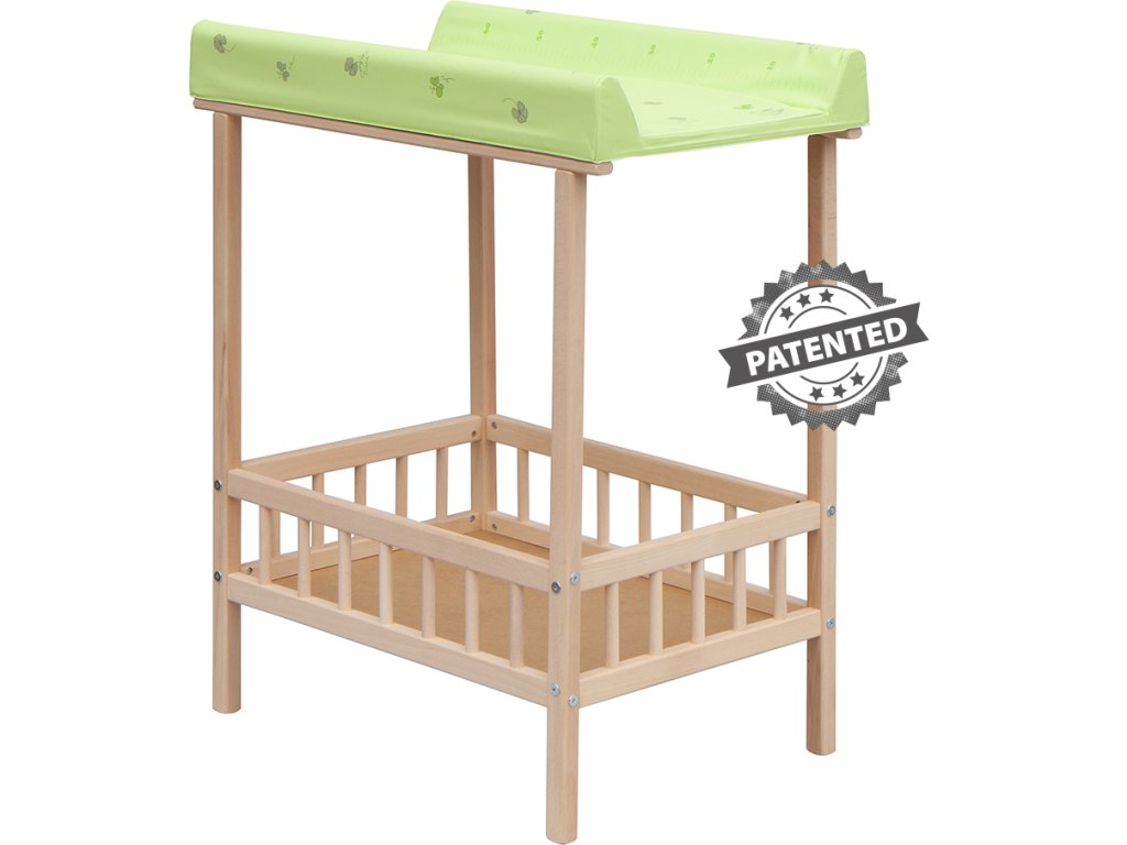 Praktický přebalovací pult se dvěmi policemi z HDF desky. Vrchní přebalovací pult z polyuretanu potažený omyvatelným PVC, vyztužený MDF deskou.