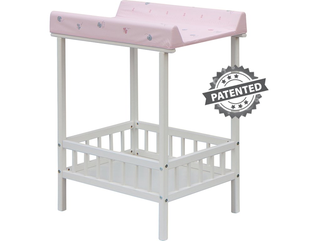 Praktický přebalovací pult se dvěmi policemi z HDF desky. Vrchní přebalovací pult z polyuretanu potažený omyvatelným PVC, vyztužený MDF deskou.