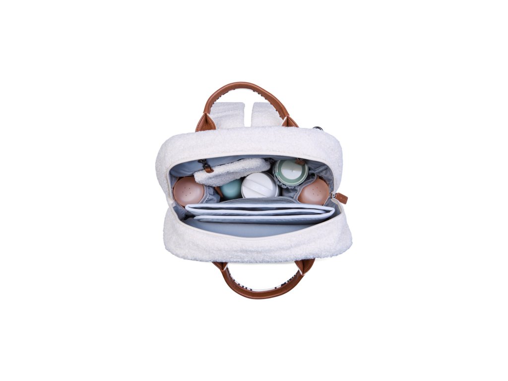 Součástí batohu je přebalovací podložka a termoizolační kapsy na láhev. Přehlednou organizaci obsahu batohu zaručuje množství vnitřních i vnějších kapes a úchytů. Díky speciální kapse pro vlhčené ubrousky jsou ubrousky vždy okamžitě po ruce připravené k použití. Úchyty na kočárek umožňují zavěšení batohu na rukojeť kočárku, úchyt na vytahovací rukojeť kufru vám usnadní cestování během dovolené.