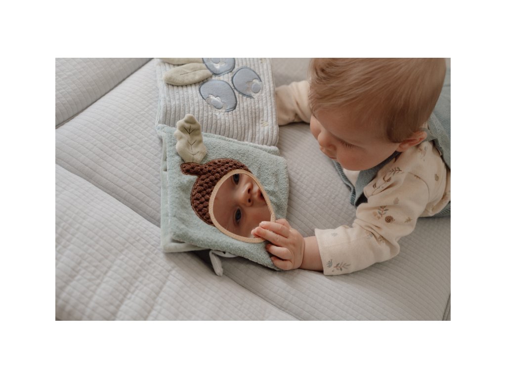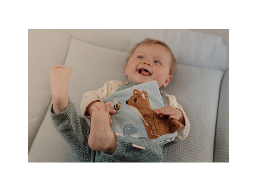 Měkká textilní knížka s krásnými motivy ze života v lese upoutá pozornost vašeho dítěte množstvím aktivit, ukrytých na jednotlivých stránkách. Ke zkoumání a prohlížení lákají šusticí i pískací stránky, různorodé textury nebo např. bezpečné zrcátko. Knížka pomáhá rozvíjet jednotlivé smysly dítěte i koordinaci ruka / oko.
