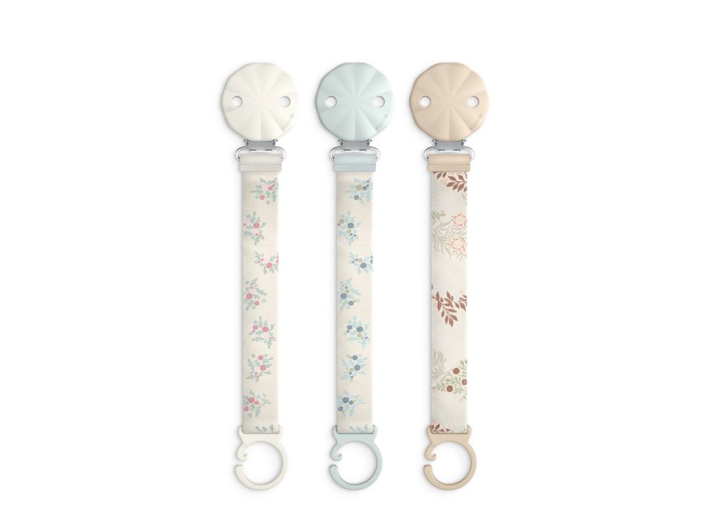 Připevněte klip k oblečení dítěte pomocí svorky. Druhý konec připevněte k dudlíku pomocí textilního poutka. Používejte vždy pod dohledem dospělé osoby.