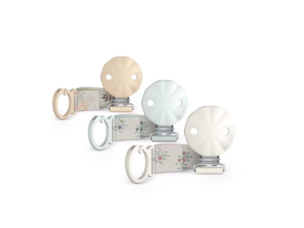 Klip, umožňuje upevnit dudlík na oblečení dítěte a předchází jeho případnému upadnutí na nečistou zem anebo jeho ztrátě.