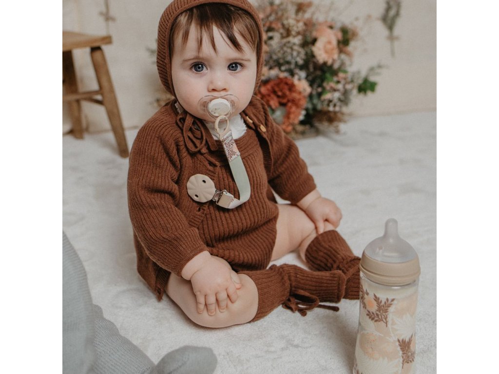 Napodobuje texturu a konzistenci matčiny bradavky a dosahuje: