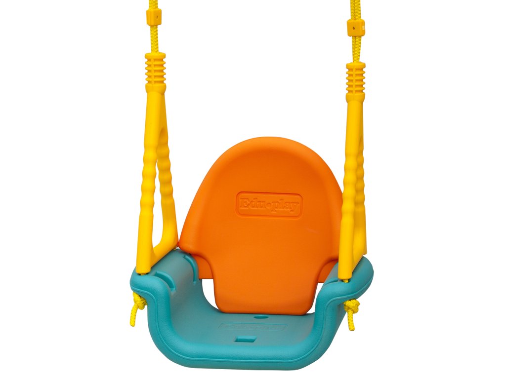 Barevná houpačka je moderní plastová houpačka vhodná pro děti až do 30 Kg. Díky unikátnímu řešení se mohou houpat malé děti. Houpačka má bezpečnostní oporu zad a také ochranný rám před dítětem. Zádová opěrka má 2 pozice pro co nejbezpečnější posez dítěte. Dětem přizpůsobíte houpačku tak, že snížíte lana. Větší děti se mohou houpat jen na sedáku s opěradlem nebo bez opěradla. Délka houpačky je nastavitelná. Sedátko je dostatečně široké pro bezpečné usazení dítěte.
