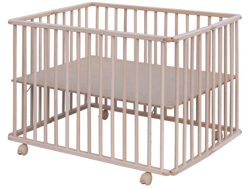 Dno je vyrobeno z MDF pro snazší údržbu. Kolečka jsou součástí ohrádky. Dno ohrádky je možné posunou do 3 různých poloh. Mechanizmus polohování je velmi jednoduchý. Ohrádku je možné v případě potřeby velmi jednoduše složit po vyjmutí dna.