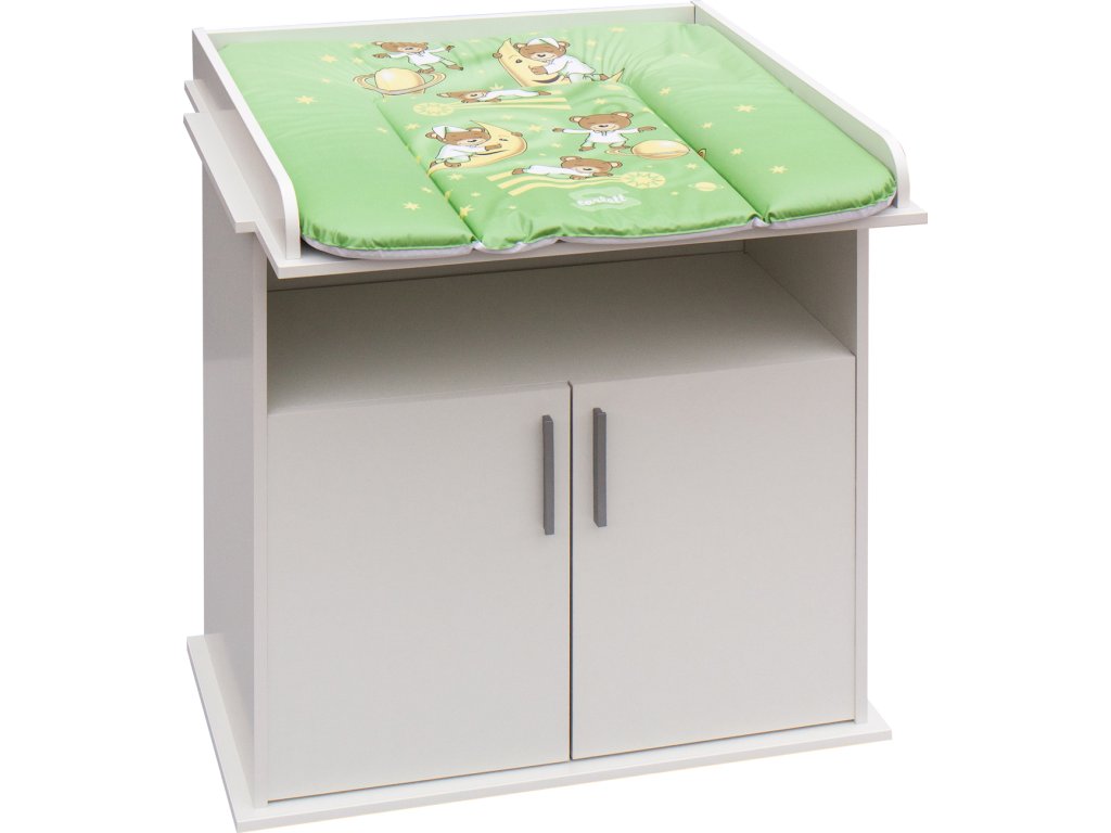 Přebalovací komoda Míša je vyrobena z laminátu v bílé barvě. Komoda má jednu otevřenou přihrádku a skříňku s policí. U komody lze jednoduše sundat desku na přebalování a nadále používat jen jako komodu i ve studentském pokojíčku. Přebalovací podložka z PVC není v ceně.