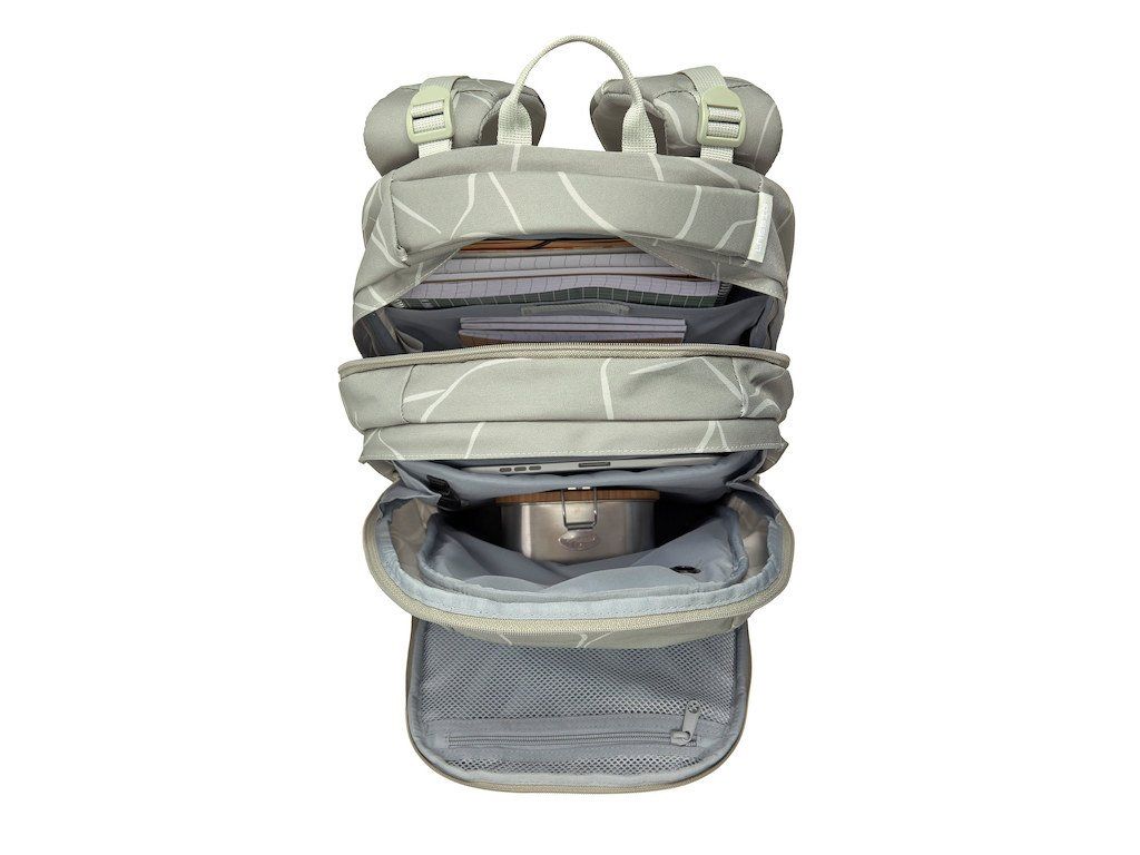 Školní batoh je vyrobený z recyklovaných PET lahví. Povrchová úprava bez PFC.