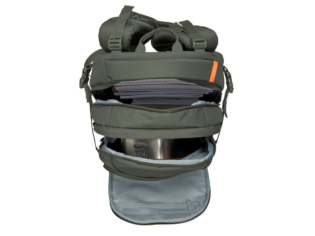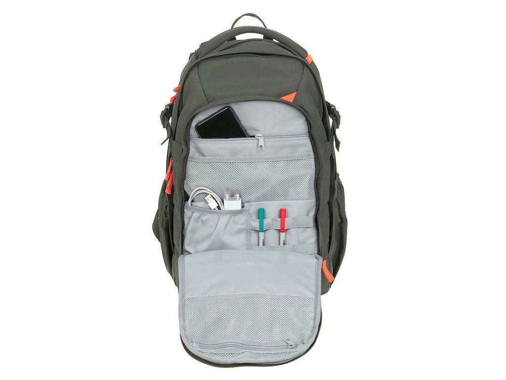 velké hlavní přihrádky na učebnice a tablet