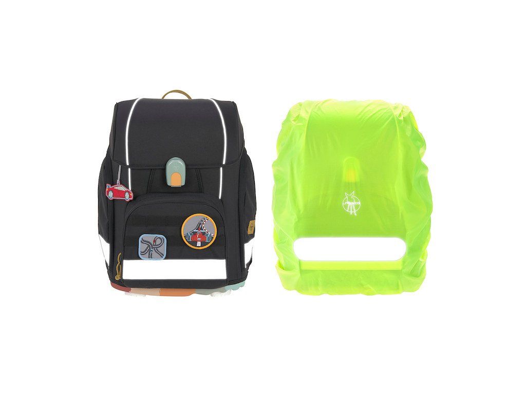 Praktický sedmidílný školní set obsahuje: školní batoh, sportovní vak, velký vybavený penál, kapsičku na krk, malý penál se zipem, pláštěnku a sadu skládající se z přívěsku a 2 nášivek určených k ozdobení setu.