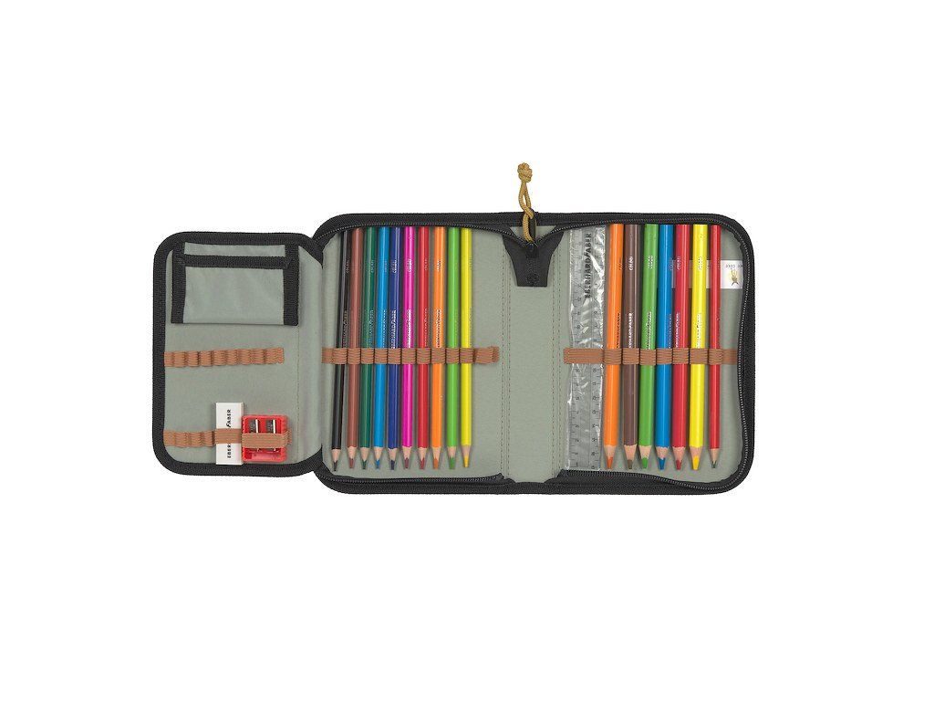 penálek se zipem na fixy a další školní potřeby, který se snadno přemění na stojánek
