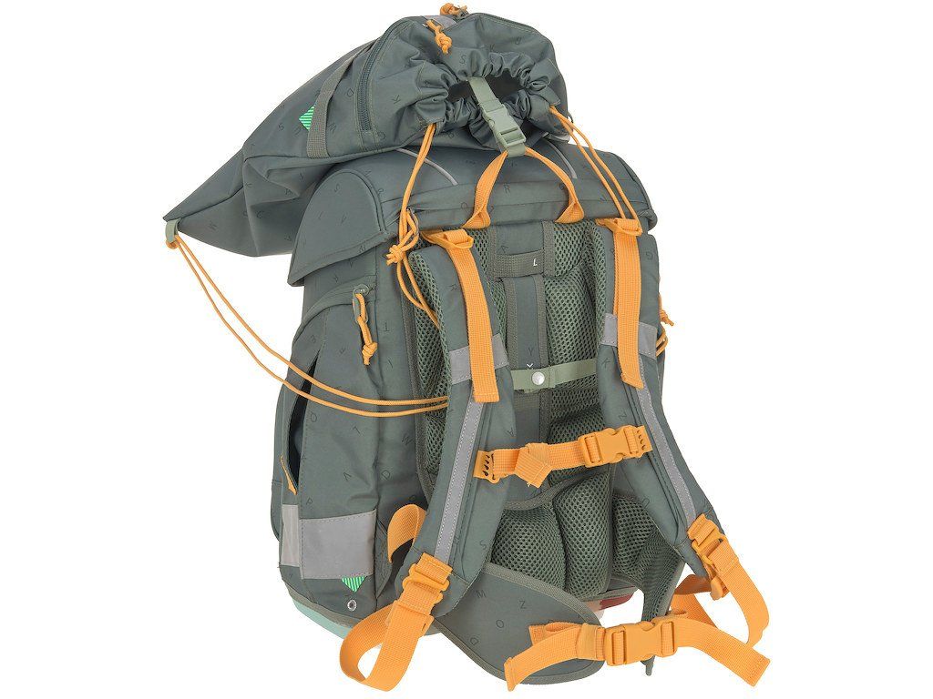 reflexní prvky na přední straně a bocích batohu, včetně pláštěnky