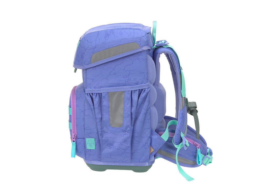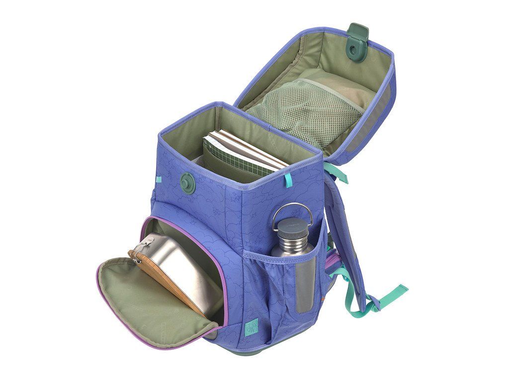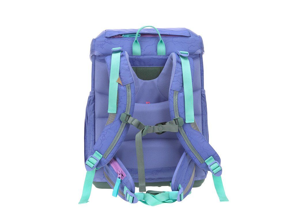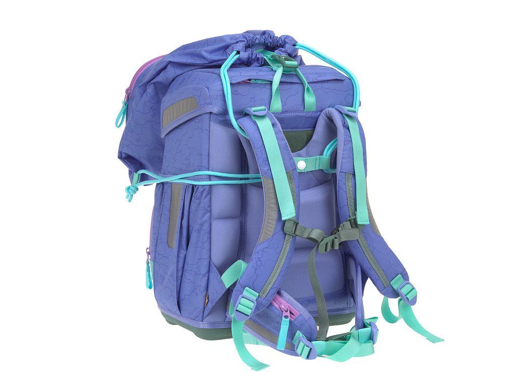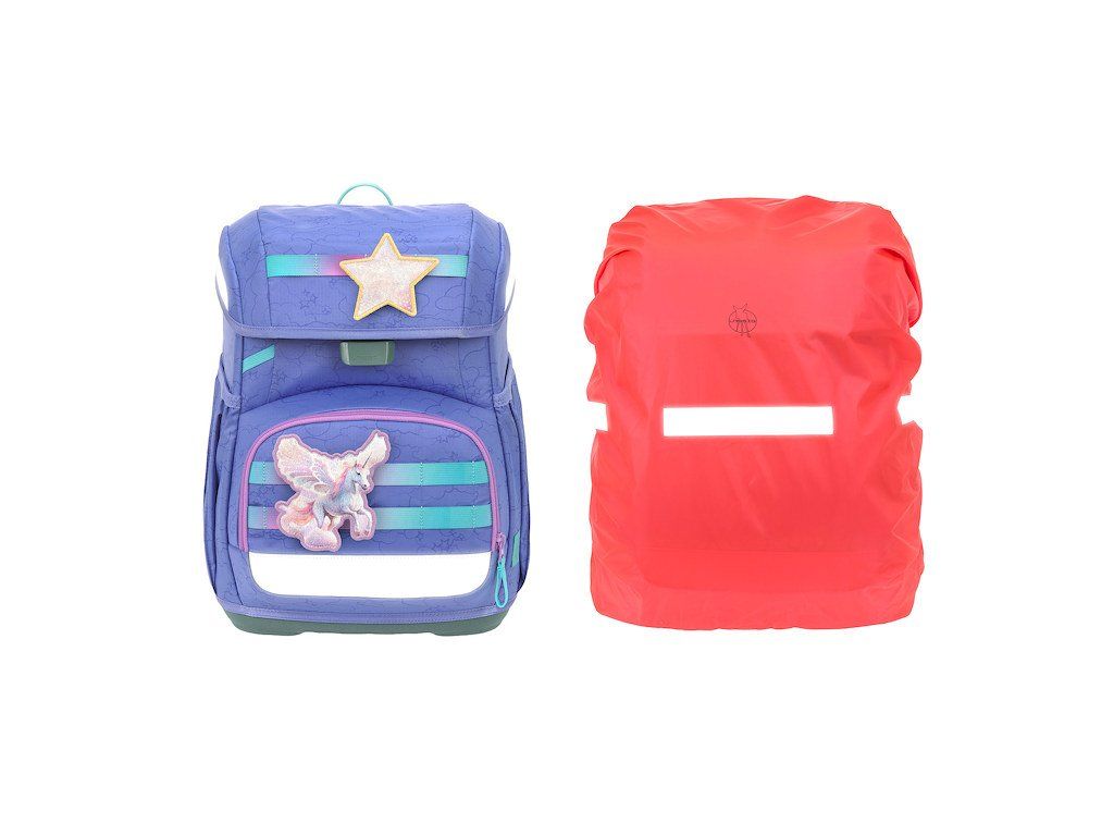 Praktický šestidílný školní set obsahuje: školní batoh, sportovní vak, velký vybavený penál, malý penál se zipem, pláštěnku a sadu skládající se ze 2 nášivek určených k ozdobení setu.