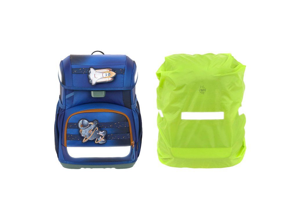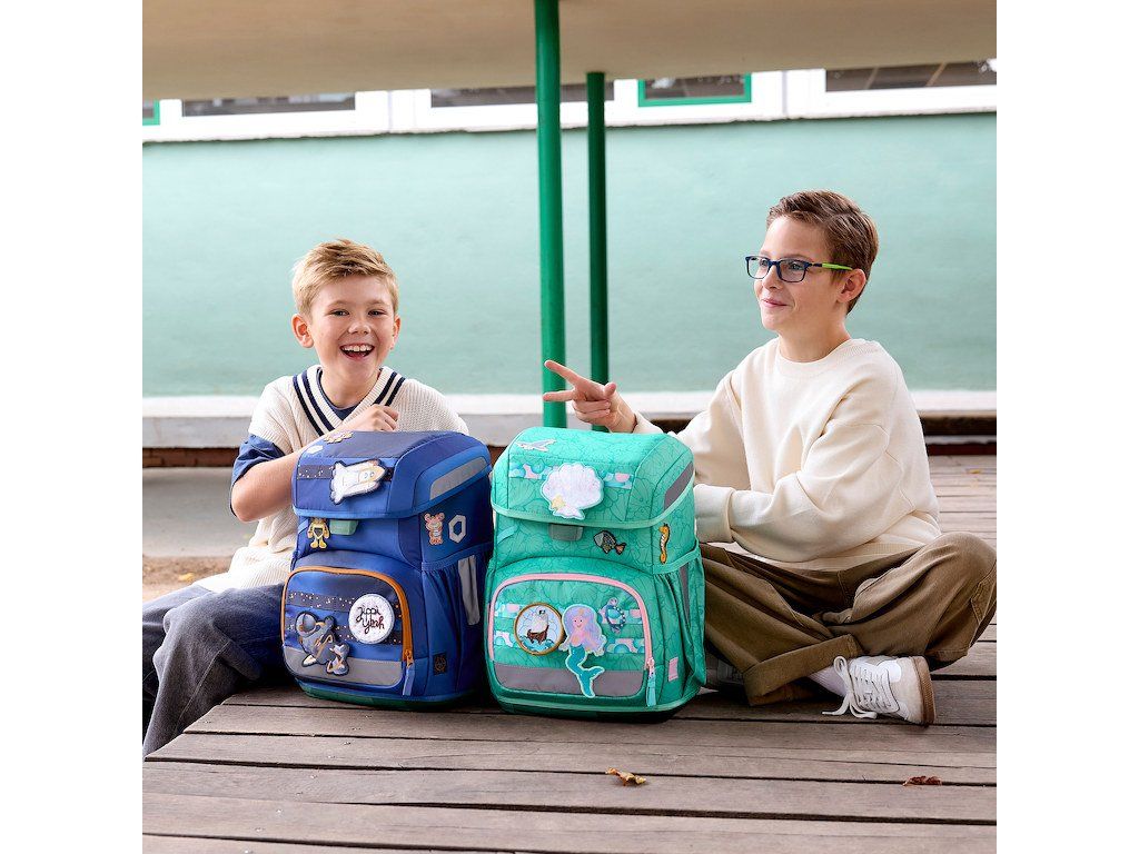 Praktický šestidílný školní set obsahuje: školní batoh, sportovní vak, velký vybavený penál, malý penál se zipem, pláštěnku a sadu skládající se ze 2 nášivek určených k ozdobení setu.