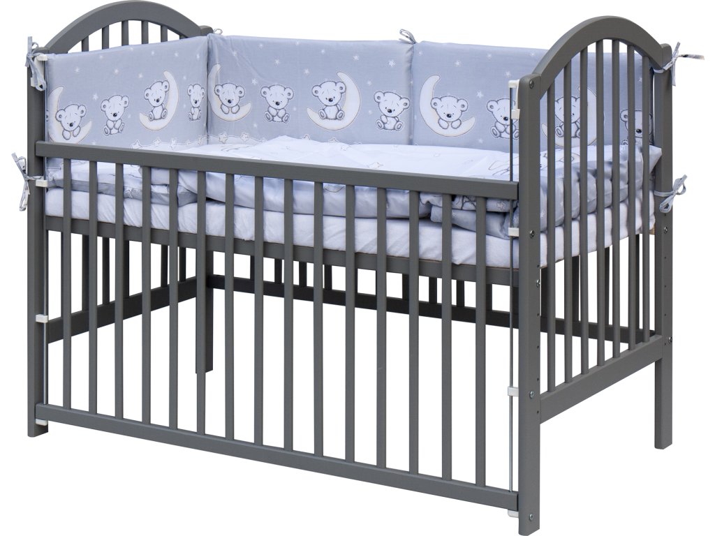 Dětská postýlka se stahovací bočnicí - šedá - 120x60 cm s kompletní výbavou Toro